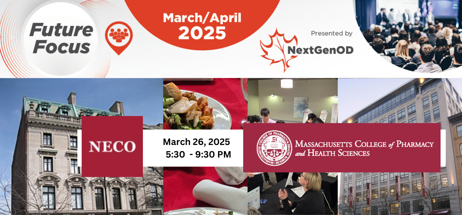 Join NextGEN OD Canada Student Ambassadors at NECO for an unparalleled opportunity to connect, learn, and grow. The Boston Event brings together Canadian Optometry students from NECO and MCPHS School of Optometry for an inspiring evening of collaboration and discovery.